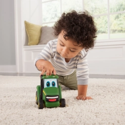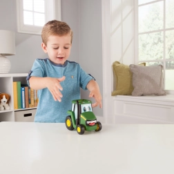 De leuke JOHN DEERE Johnny tractor voor de allerkleinsten biedt eenvoudige bediening: druk op het dak en rijden maar! Het compacte formaat van 15 cm past ideaal in kinderhanden en het veilige speelgoed schiet vooruit zodra je loslaat.