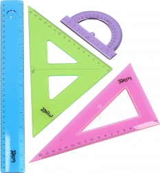 Alle onderdelen van de set zijn ontworpen voor nauwkeurig tekenen en meten, geschikt voor wiskunde, geometrie en technisch tekenen. De kleurcodering ondersteunt snelle oriëntatie en motiveert kinderen om met de hulpmiddelen te werken.
