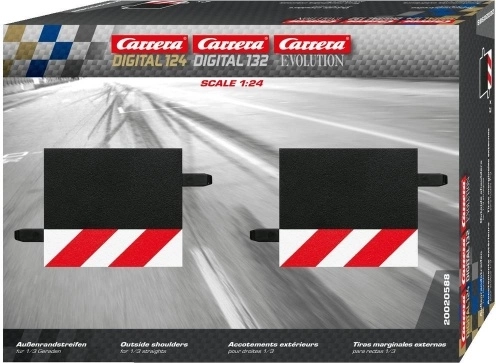 Bermen voor rechte baan 1/3 voor CARRERA EVOLUTION, DIGITAL 132 en DIGITAL 124. Verpakking 4 stuks, eenvoudige montage aan rechte baan 1/3 (20611) voor een stabielere en bredere baan.