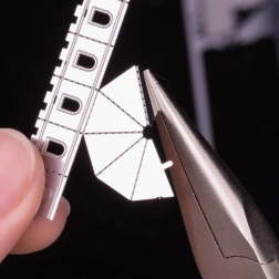 De verfijnde bekken zorgen voor een stevige grip, zelfs op zeer kleine onderdelen, en vergemakkelijken het buigen en uitlijnen van kleine lipjes waarmee de afzonderlijke delen worden verbonden. Dankzij de compacte afmetingen en het comfortabele hanteerbare ontwerp is werken met deze set snel, schoon en precies.