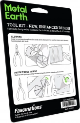 Praktische tangenset voor het nauwkeurig assembleren van 3D metalen puzzels METAL EARTH. Bevat een zijkniptang en een punttang voor het gemakkelijk uitknippen van onderdelen uit metalen platen en het precies buigen van lipjes bij het verbinden van afzonderlijke delen van het model.