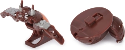 De bruine Bakugan met zilverkleurige details klapt open in gevechtsmodus zodra hij over de poortkaart rolt – een iconische transformatie zoals in de serie.