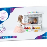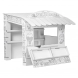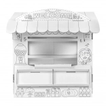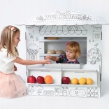 Dompel uw kinderen onder in de wereld van spel met deze kartonnen speelstand. Het ontwerp doet denken aan een klein winkeltje waar kinderen hun sociale vaardigheden en creativiteit kunnen ontwikkelen: