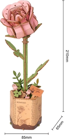 Deze elegante houten roos is een geweldig cadeau en een stijlvolle interieuraccessoire. Dankzij de slim ontworpen onderdelen is het model eenvoudig te bouwen en oogt het toch zeer realistisch. Met de lage moeilijkheidsgraad en een bouwtijd van circa 30 minuten is dit project leuk voor beginners, gezinnen en creatieve liefhebbers.
