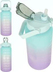 De grote bidon met een inhoud van 2 liter is ontworpen voor hydratatie de hele dag door. Op de fles vind je tijdsmarkeringen die je motiveren regelmatig te drinken, en dankzij de uitklapbare tuit met rietje drink je comfortabel zonder te kantelen.