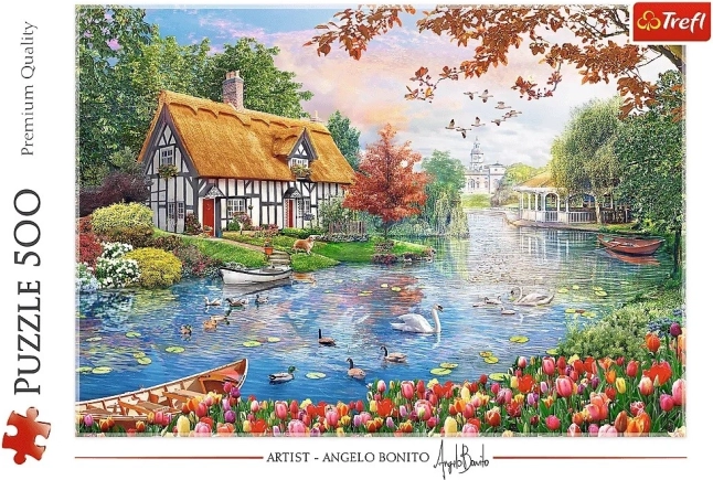 Duik in de wereld van creativiteit met puzzel Stille Haven, die na samenstellen een adembenemend beeld vormt ontworpen door kunstenaar Angelo Bonito. Deze puzzel bevat 500 stukjes en toont een prachtige huisje aan de rivier.