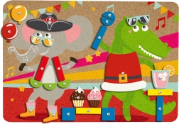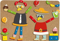 Dit populaire hamerspel zal zowel kleine bouwers als kleine kunstenaars enthousiast maken. Met gekleurde houten onderdelen en bedrukte speciale vormen kunnen kinderen hun eigen afbeeldingen, patronen en scènes maken op het stevige kurken bord. Bij het vastzetten van de onderdelen met spijkertjes ontwikkelen ze op natuurlijke wijze fijne motoriek, oog-handcoördinatie en geduld.