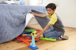 De set is bovendien gemakkelijk te monteren voor handig opbergen en bevat 1 Hot Wheels auto op een schaal van 1:64, zodat je direct kunt beginnen met racen.