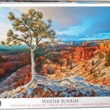 Geniet van ontspanning met de hoogwaardige puzzel van EUROGRAPHICS met het motief van een winterdageraad in Bryce Canyon. Dankzij HDR-fotografie komen realistische kleuren en fijne details prachtig naar voren. De onregelmatige stans met atypische stukvormen zorgt voor een hogere moeilijkheidsgraad en langere speelduur. De set van 1000 stukjes meet na het leggen ongeveer 67,63 × 48,89 cm.