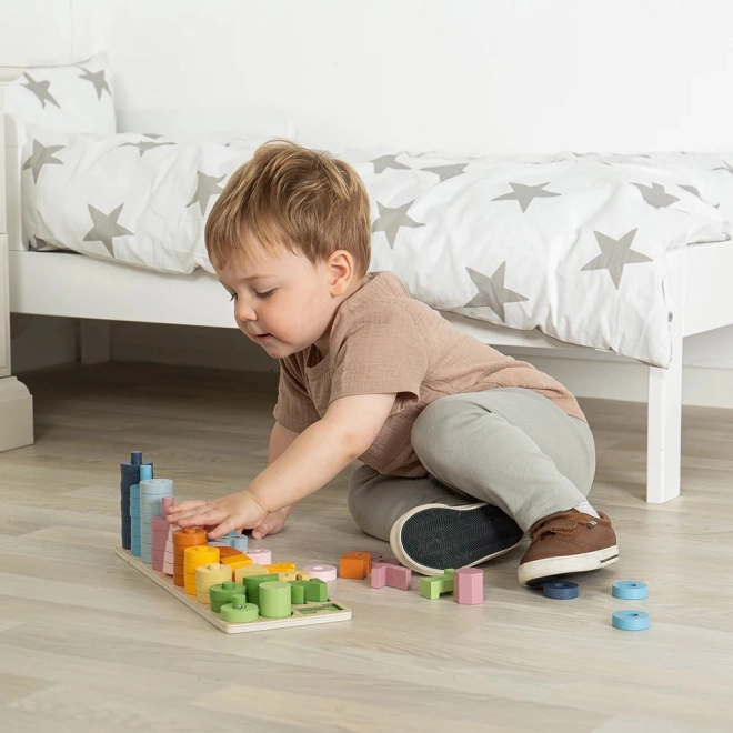 Deze houten telplank is een geweldig speeltje voor jonge kinderen dat hen helpt bij de ontwikkeling van cognitieve vaardigheden, fijne motoriek en hand-oog coördinatie. Het bevat 78 stukken inclusief cijfer- en vormpuzzels, die kinderen aanmoedigen om al spelend te leren.