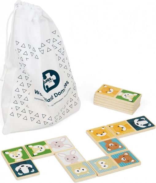Ga met de kinderen op avontuur in de dierenwereld met het houten domino Bosdieren. Elk van de 28 stukjes is versierd met kleurrijke dierenafbeeldingen en alle stukjes passen comfortabel in kleine kinderhanden.