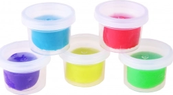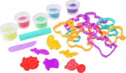 Vier potjes kleurrijke klei, een deegroller en tal van kunststof uitsteker-vormpjes voor eindeloze ideeën en plezier.