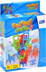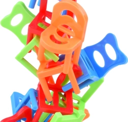 Het balansspel met vallende stoeltjes test je geduld, concentratie en handigheid. Het doel is om stoeltjes stap voor stap toe te voegen aan de groeiende constructie, zonder de reeds geplaatste stukken te raken en zonder dat de toren omvalt. De winnaar is degene die als eerste al zijn stoeltjes plaatst.