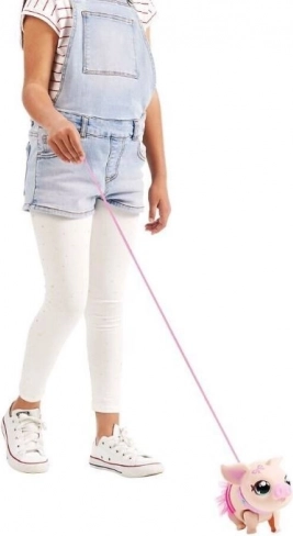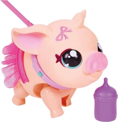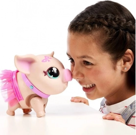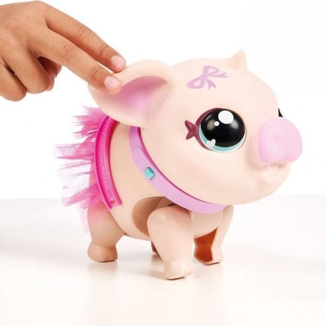 Schattig klein ballerina-varkentje in een TUTU-rokje dat beweegt als een echt varken. Het maakt veel grappige en lieve geluiden – het spint, giechelt, knort, snuffelt, niest, en laat soms zelfs een boertje!