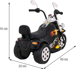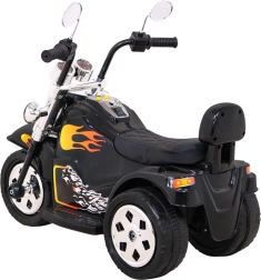 Stijlvolle elektrische kindermotor in chopper-stijl met stabiele driewielconstructie, veilig rijden voor- en achteruit en opvallende vlammen-details. Dankzij de 25 W motor, 6 V / 4,5 Ah accu en voorlicht is hij ideaal voor de eerste rijervaringen. Brede kunststof wielen en een comfortabel zadel zorgen voor stabiliteit en comfort tijdens het rijden.