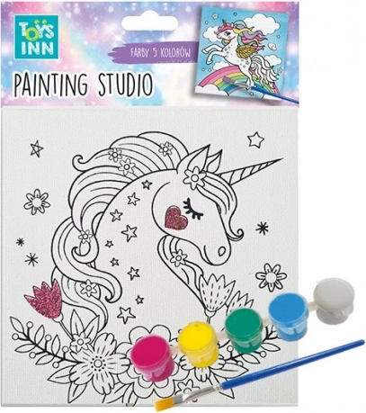 Ontdek het plezier van creëren met deze schilderset met eenhoornthema. Bevat een canvas van 15 × 15 cm, een penseel en 5 kleuren (wit, geel, roze, blauw, groen) – ideaal voor kinderen en beginners. Gemakkelijk schilderen, stimulatie van creativiteit en vrije­tijdsplezier in één set.