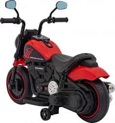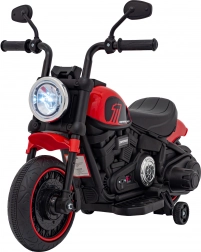 De stijlvolle kinderchopper FASTER biedt jonge rijders veel plezier en veiligheid. Hij is uitgerust met een elektrische aandrijving van 20 W, een 6V/4,5Ah-accu, LED-koplampen en een uitgebreid audiopaneel (FM-radio, MP3, SD, Bluetooth, USB, AUX). Stabiele kunststof wielen en zijwieltjes zorgen voor eenvoudig rijden vooruit en achteruit, terwijl het zachte zadel en realistische motorgeluiden bij het starten voor een authentieke beleving zorgen.