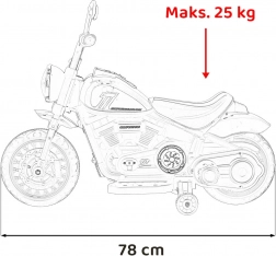 Gun kinderen een leuke en veilige rit op deze elektrische choppermotor. Realistische details, een brandende LED-koplamp en rijden vooruit en achteruit ondersteunen de motoriek en het zelfvertrouwen van jonge rijders. Dankzij de stabiliserende zijwieltjes is de motor ook geschikt voor beginners.