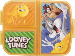 Praktische en duurzame snack-multibox met LOONEY TUNES-motieven maakt zowel jonge schoolkinderen als kleuters blij. Biedt drie afzonderlijke vakken voor een sandwich, fruit en kleine lekkernijen, is gemaakt van stevig BPA-vrij plastic en is gemakkelijk te onderhouden. Dankzij de officiële licentie en het speelse design is hij favoriet voor school, speeltuin en uitstapjes.