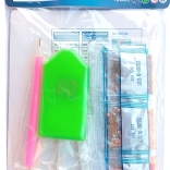 - Complete set – afbeelding, pen, bakje, was, gekleurde steentjes en standaard.