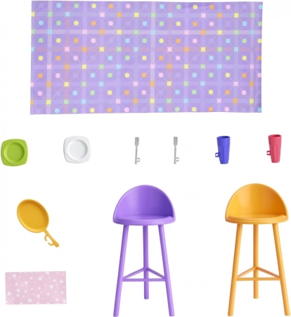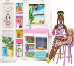 Inclusief een BARBIE-pop en 11 stijlvolle accessoires – servies, 2 stoeltjes, een handdoek en een dekentje – die het interieur verfraaien en nieuwe speelinspiratie bieden. Grafische motieven zoals afvalscheiding, planten, zonnepanelen op het dak en een elektrische auto leren kinderen spelenderwijs over ecologie.