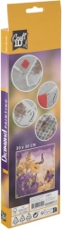 Tip voor het beste resultaat: Verwijder de bovenste folie met de kleeflaag steeds slechts gedeeltelijk, zodat het oppervlak schoon blijft en de steentjes goed hechten. Na voltooiing kun je het afgewerkte kunstwerk inlijsten en tentoonstellen. De lijst is niet inbegrepen.