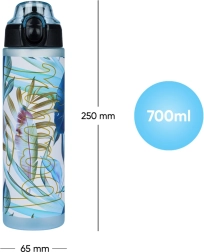 Stijlvolle en gezondheidsveilige waterfles van gecertificeerd tritan voor dagelijks drinken. Heeft een inhoud van 700 ml, een vergrendelbare, lekvrije dop met snelle opening en een polslus voor comfortabel dragen. Het materiaal is vrij van BPA, PVC en ftalaten, neemt geen geuren op en is ideaal voor school, werk, sport en uitstapjes.