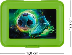Houd je snack vers en overzichtelijk geordend. Deze groene box met aantrekkelijk voetbaldesign is perfect voor kinderen en volwassenen die eenvoudige bediening en een betrouwbare sluiting waarderen.