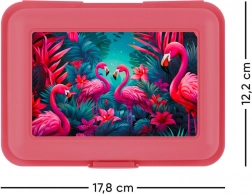 Ontdek de ideale oplossing voor het meenemen van snacks, waarbij design en functionaliteit worden gecombineerd. Deze broodtrommel is met zijn roze kleur en flamingo‑motief een frisse toevoeging aan je dagelijkse routine. Hij is gemaakt van stevig plastic, wat een lange levensduur garandeert.