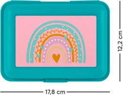 Maak van uw pauze een stijlvol moment met onze regenboog turquoise broodtrommel. Deze functionele plastic doos is ideaal voor dagelijks gebruik dankzij de enkele sluiting en praktische interne scheidingswand. De doos is ontworpen om duurzaam en gemakkelijk draagbaar te zijn, waardoor hij een geweldige hulpmiddel is voor school en werk.