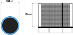 Dit interne beschermnet is compatibel met de meeste trampolines met een diameter van 305 cm (10 ft) en is ontworpen voor 6 verticale palen (3 dubbele poten). De universele bevestiging maakt gebruik met een groot deel van de modellen op de markt mogelijk, ongeacht de fabrikant. De ingang is voorzien van een tweeweg-rits met gesp voor nog meer veiligheid voor kinderen en volwassenen.