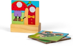 Deze houten treinbaan met kermisthema bevat alles wat je nodig hebt om je onder te dompelen in werelden vol plezier en vrolijkheid. Kinderen kunnen met de trein langs een circustent rijden, eendjes vangen of foto’s maken met grappige fotodecors. De set bevat: