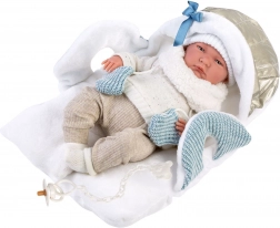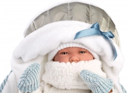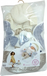 Deze elegante NEW BORN poppenoutfit valt op door de zorgvuldige afwerking en het tijdloze design. In de set vind je op elkaar afgestemde gebreide en textiele items voor dagelijks en winterstyling, aangevuld met een zachte mat met capuchon en praktische riemen, zodat je de pop eenvoudig kunt meenemen.