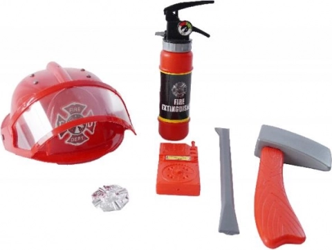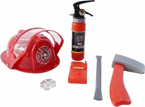 PLEJO set voor brandweerlieden met helm, brandblusser en gereedschap
