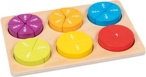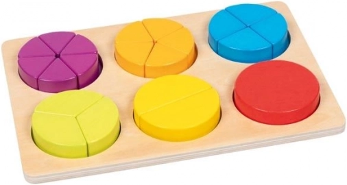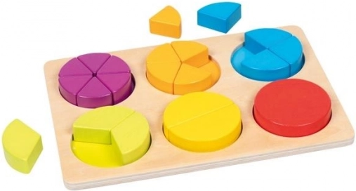 De houten educatieve puzzel Breuken is een ideale tool voor jonge kinderen die de basis van wiskunde willen leren in de vorm van een leuk spel. Dankzij de gekleurde segmenten en het eenvoudige ontwerp leren kinderen gemakkelijk concepten zoals helften, kwarten en andere breuken. De houten onderplaat vergemakkelijkt het leggen en zorgt voor een langere levensduur van het product.