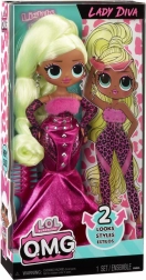 De L.O.L. Surprise! O.M.G. Lady Diva pop brengt luxueuze stijl, glinsterende details en een opvallende roze look die meteen in het oog springt. Dankzij de bewegende gewrichten is ze ideaal om te poseren en te fotograferen, terwijl de rijke set accessoires creatief combineren van outfits ondersteunt.