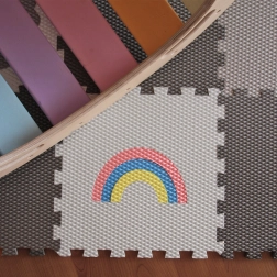 Het veerkrachtige schuim dempt schokken, isoleert tegen kou van de vloer en creëert een aangename omgeving om te kruipen, zitten en spelen.