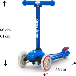 De step is uitgerust met drie wielen voor verhoogde stabiliteit en veiligheid. Het kind kan zich veilig en zelfverzekerd voelen tijdens het rijden.