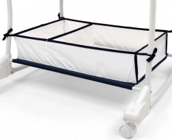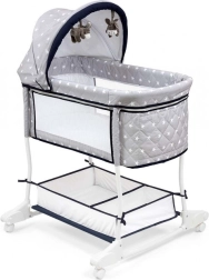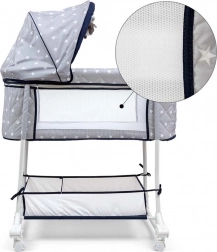 De wieg is uitgerust met wieltjes voor eenvoudige verplaatsing in huis en kan dankzij de compacte afmetingen ook gemakkelijk naar andere plekken worden meegenomen.