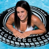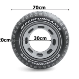 Wij bieden je een stijlvolle opblaasbare ring in de vorm van een autoband, ideaal voor ontspanning en plezier in het water. Dit product valt op door het realistische loopvlakpatroon en de contrasterende kleuren, wat het een uniek karakter geeft. Een uitstekende keuze voor zwembaden, stranden en meren.