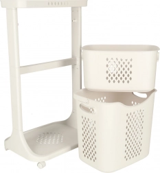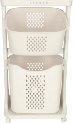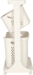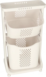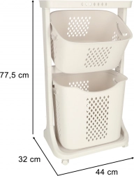Praktische tweelaagse organizer op wieltjes maakt het sorteren van wasgoed en het opbergen van speelgoed eenvoudig. Twee uitneembare manden met perforatie zorgen voor uitstekende ventilatie, eenvoudig onderhoud en snelle overdracht. Dankzij de wieltjes voor gemakkelijke bediening en de compacte afmetingen past hij in de badkamer, wasruimte en kinderkamer.