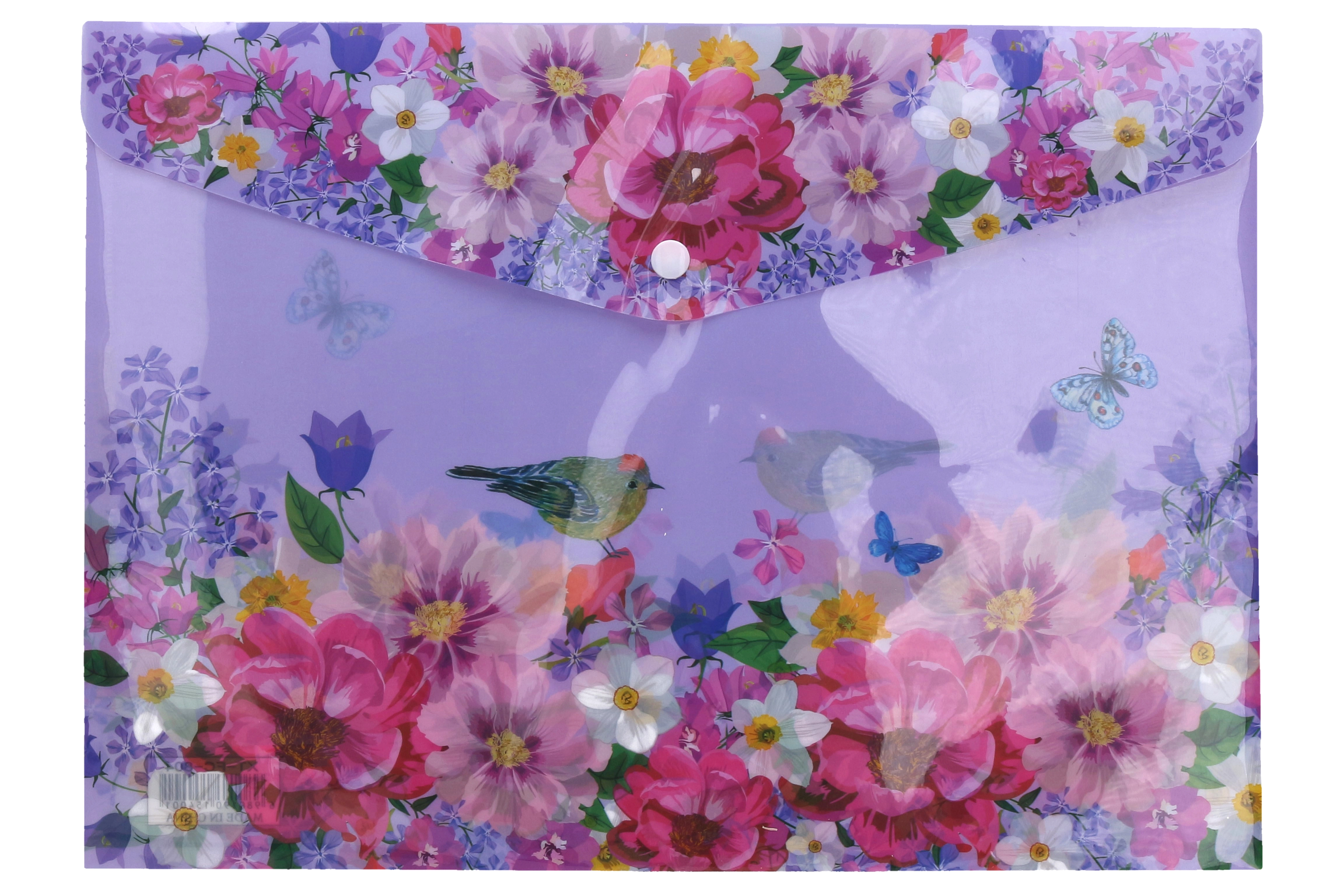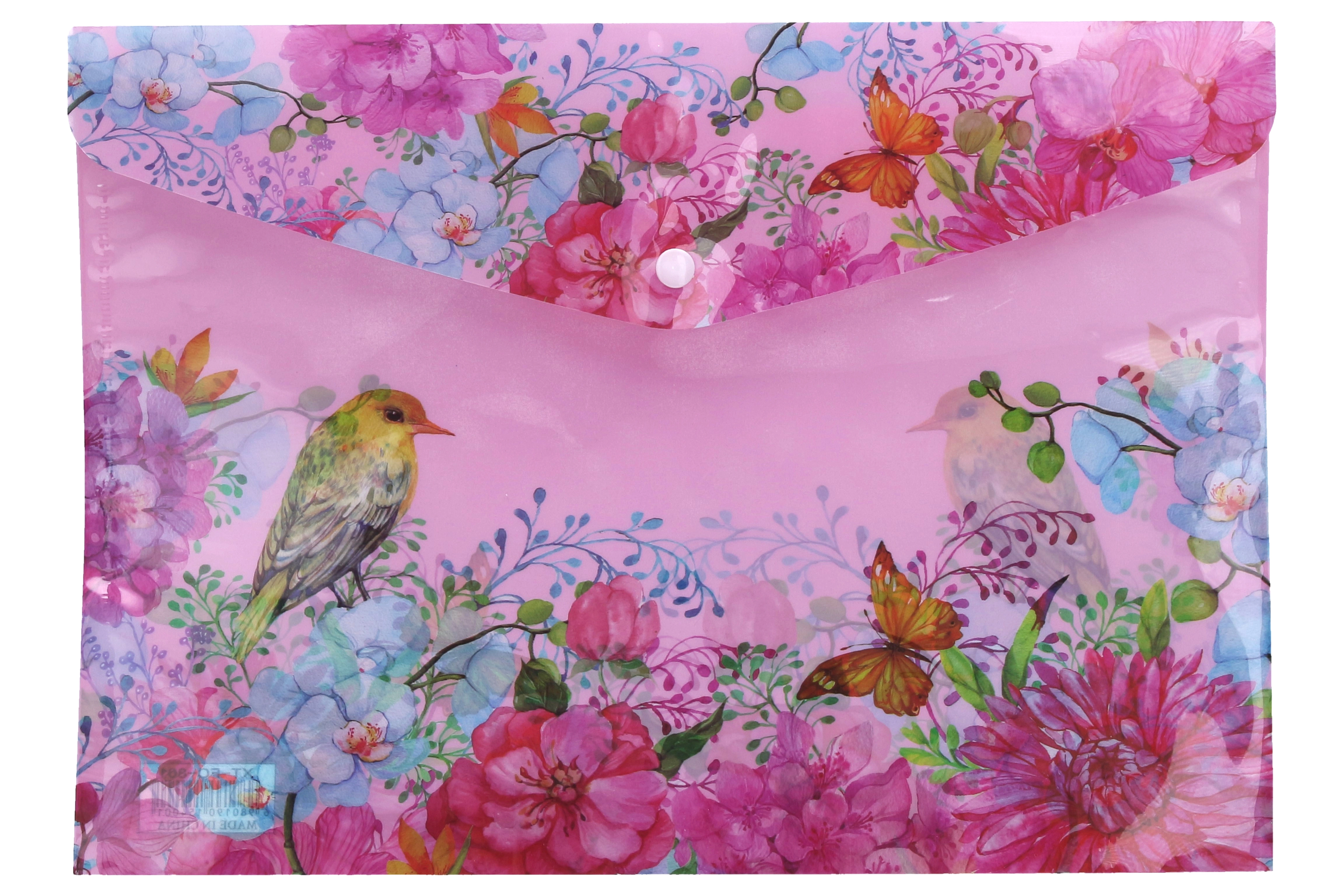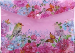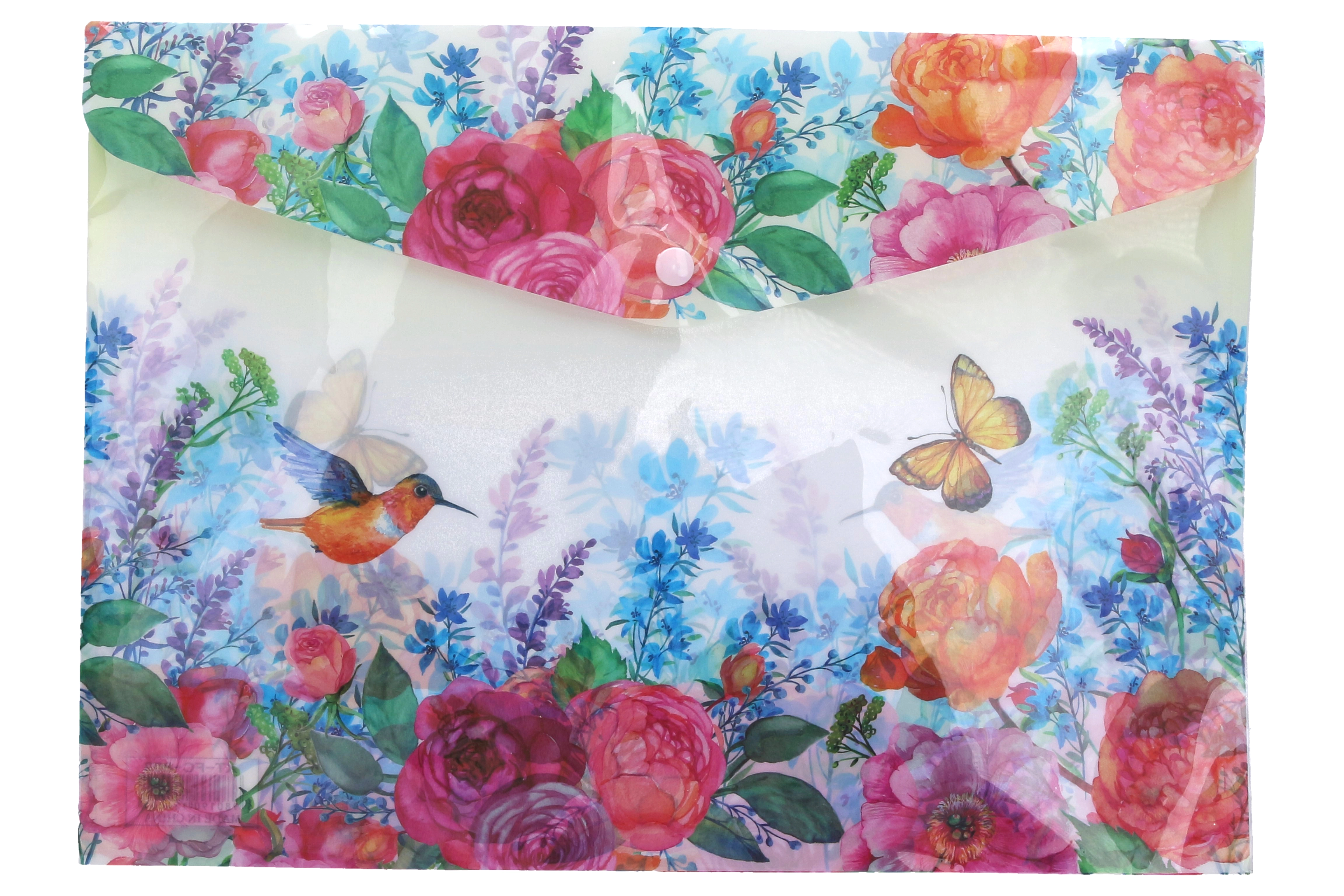 Houd je papieren geordend met de elegante map met drukknoop 35 × 25 cm. Het bloemenmotief “bloesem” geeft je documenten een frisse uitstraling, terwijl de stevige drukknoopsluiting ze veilig binnen houdt.