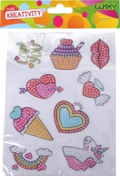 Maak je eigen originele stickers met een diamantsparkel-effect. De set bevat een mix van stickers en decoratieve steentjes die gemakkelijk te plakken en te combineren zijn. Ideaal voor scrapbooking, het versieren van kaarten, dagboeken, schriftenomslagen of cadeauverpakkingen. Dankzij de eenvoudige toepassing is de set geschikt voor zowel beginners als kinderen.