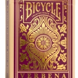 Bicycle Verbena is een set speelkaarten met een elegant ontwerp geïnspireerd door de verbenabloem. Dankzij de verfijnde lijnen en paarse tinten met vergulde details straalt het esthetiek en verfijning uit.