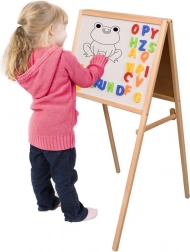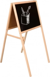 Educatief, speels en ruimtebesparend – dit dubbelzijdige kinderbord biedt een zwart krijtvlak en een magnetisch, droog uitwisbaar wit vlak, heeft een stabiele houten constructie en wordt geleverd met stift, krijtjes, een spons en magnetische letters.