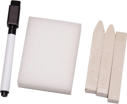 • Dubbelzijdig ontwerp: krijt en droog uitwisbare stift op één bord