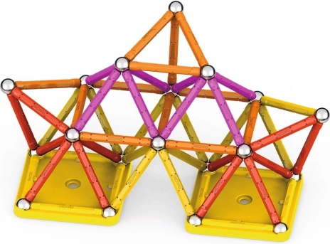 Magnetische staafjes en metalen bolletjes klikken precies en stevig in elkaar, zodat kinderen ook complexere 3D-modellen kunnen bouwen zonder onnodig instorten.