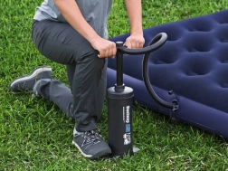 Deze dubbelwerkende handpomp maakt snel opblazen mogelijk doordat deze lucht pompt tijdens zowel op- als neerwaartse beweging. Het is een uitstekende keuze voor kamperen en andere buitenactiviteiten dankzij het compacte formaat.