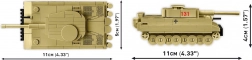Het model van COBI-constructiesteentjes stelt de tank Tiger I 131 voor, het enige bewaard gebleven werkende exemplaar van zijn soort uit de Tweede Wereldoorlog. Dit historische juweel, te zien in The Tank Museum in Bovington, Verenigd Koninkrijk, is een echte ster onder de tanks. Tiger 131, geproduceerd in 1942, werd in mei 1943 door Britse troepen in Tunesië buitgemaakt en werd na grondige conservering onderdeel van de museumexpositie.