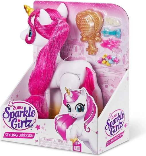 De stylings-eenhoorn ZURU Sparkle Girlz brengt kinderen een wereld vol fantasie en glitter. Dankzij de lange, textielen manen kunnen kinderen kammen, versieren en nieuwe kapsels creëren, terwijl de glinsterende hoorn en hoefjes elke speelsessie een magisch tintje geven.